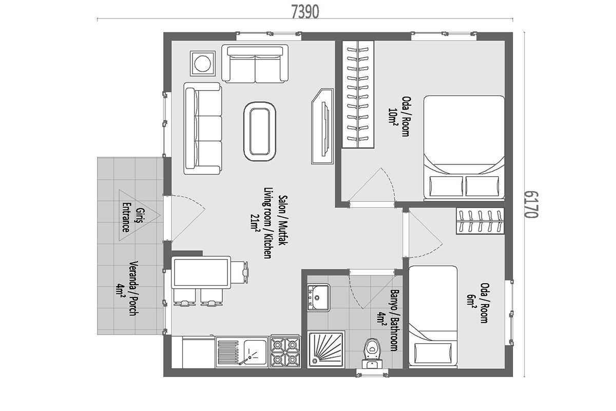 45 m² Çelik Ev 2+1
