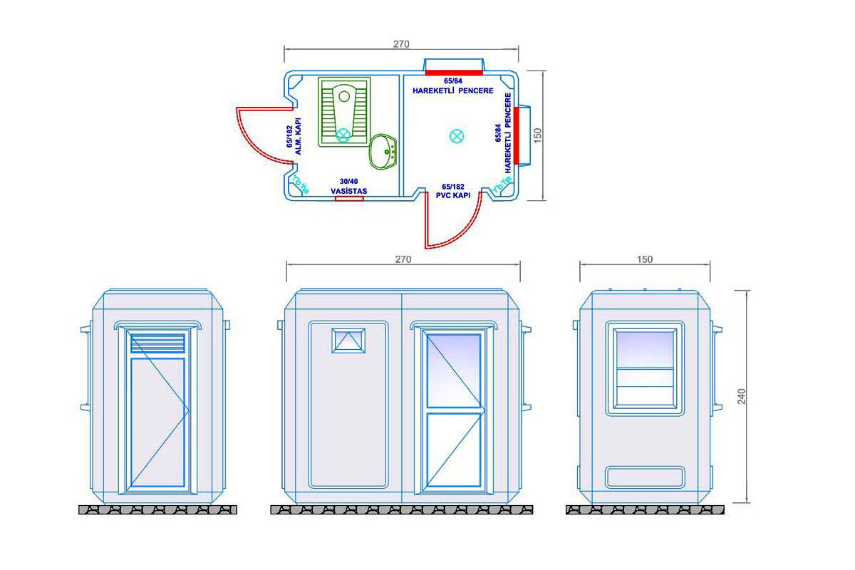 Taşınabilir Tuvalet ve Duş Ünitesi 150x270cm